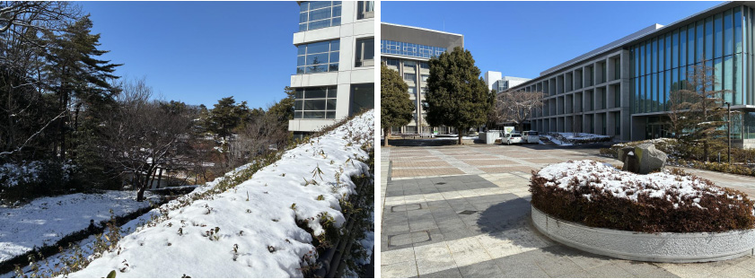 2月7日(土)昼頃から8日にかけてこの冬最強とされる強い寒気に覆われ、太平洋側の平地でも広い範囲で降雪し、都心でも5cmの積雪を記録しました。翌9日朝、龍ケ崎キャンパスには若干ですが雪が溶けずに残っていました。(写真)